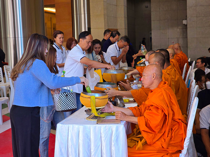 Premium Asset Company Limited (PA), a provider of office space and seminar room rentals under Jasmine International Public Company Limited (JAS), organized its first merit-making ceremony of 2025. Nine Buddhist monks from Wat Chonprathan Rangsarit were invited to receive alms at the Lobby, G floor, Jasmine International Building, Chaengwattana Rd.