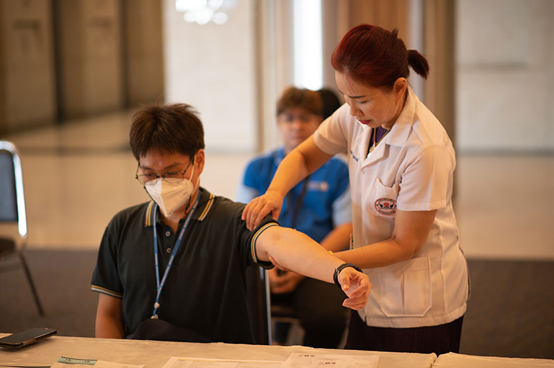 Jasmine International Public Company Limited (JAS), in collaboration with Pataravejsiam Thai Traditional Medicine School, organized “Be Health We Help” activity to promote health and wellness of employees within “JAS Group”. This activity provides medical examination services as well as health issue consultation based on Thai traditional medicine principles. On this occasion, Mr. Thanyaphat Niruthisard, Chief of Staff of JAS, handed over a support of 30,000 baht to the school, with Mr. Jill Phromdee, School Administrator, receiving the fund, at Jasmine International Tower on Chaengwatana Rd.