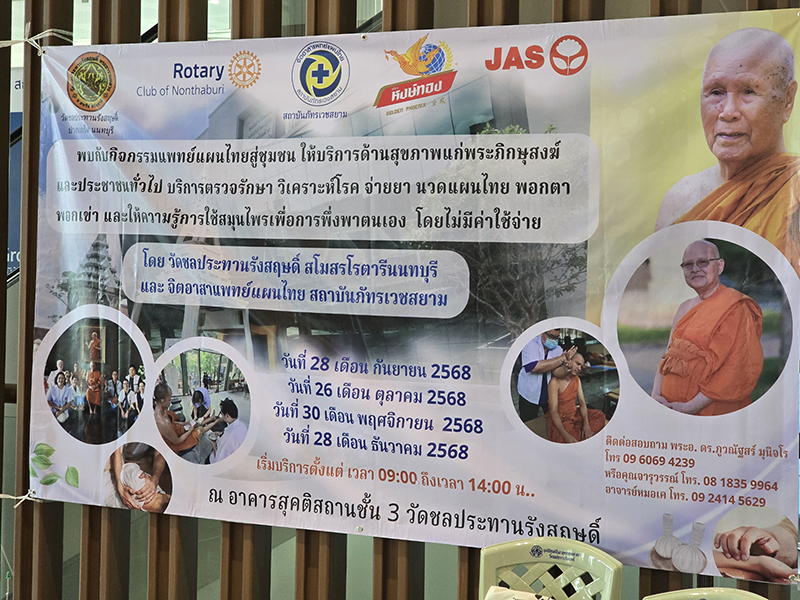 Jasmine International Public Company Limited (JAS) provided support for "Traditional Thai Medicine to the Community" activities to promote good health for people in the community, in collaboration with Pataravejsiam Thai Traditional Medicine School. The activity featured free medical examinations, diagnoses, and health consultations based on traditional Thai medical principles.