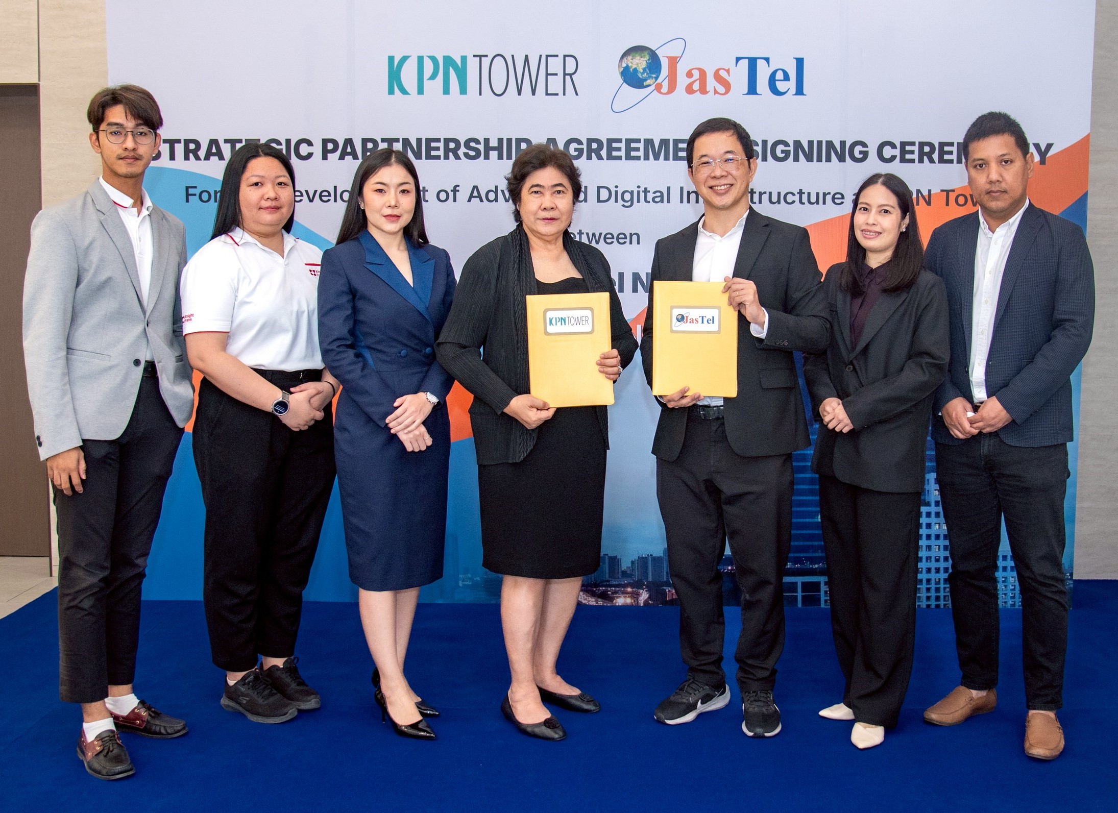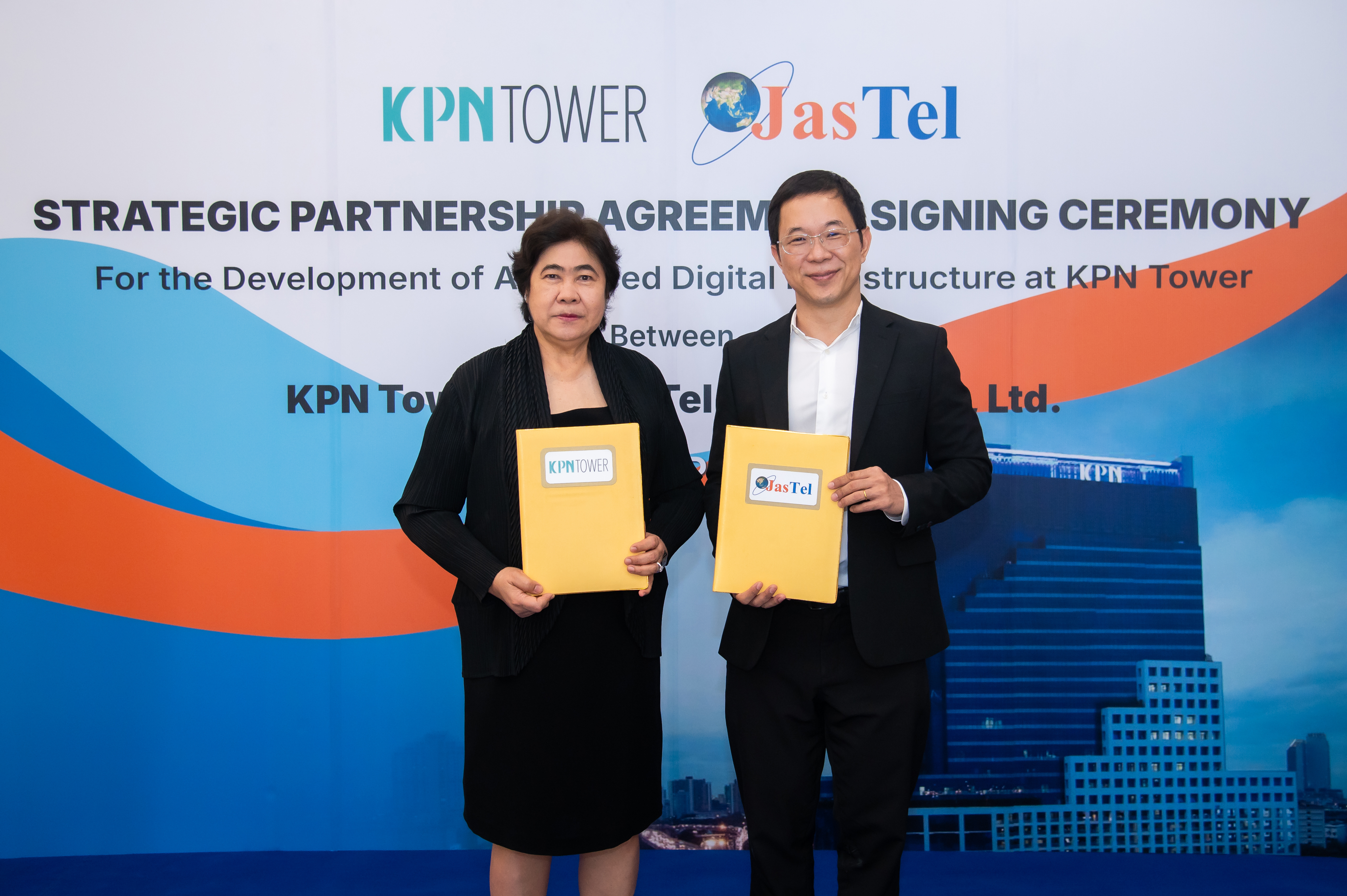 คุณศุทธ์ธี โอภาสสมุทรชัย ประธานเจ้าหน้าที่บริหาร บริษัท จัสเทล เน็ทเวิร์ค จำกัด หรือ JasTel ผู้ให้บริการโทรคมนาคมทั้งในประเทศและต่างประเทศ ในเครือ JAS Group พร้อมด้วย คุณเพียงใจ เปศะนันทน์ กรรมการผู้จัดการ ทรัสต์เพื่อการลงทุนในอสังหาริมทรัพย์เคพีเอ็น ร่วมลงนามบันทึกความร่วมมือโครงการพัฒนาการให้บริการวงจรสื่อสารความเร็วสูงในอาคารเคพีเอ็น ทาวเวอร์ โดย JasTel จะเป็นผู้ให้บริการวงจรสื่อสารความเร็วสูงภายในอาคาร เพื่อยกระดับคุณภาพการให้บริการสื่อสารสำหรับธุรกิจและองค์กรด้วยโครงข่ายที่รวดเร็วทันสมัย รองรับการใช้งานเทคโนโลยีดิจิทัลในยุคปัจจุบันได้อย่างครอบคลุม เพื่อสนับสนุนการเติบโตของภาคธุรกิจอย่างยั่งยืน ณ อาคารเคพีเอ็น ทาวเวอร์ เมื่อวันก่อน
